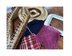 Nancy will be demonstrating several types of pin looms. There will be about 15 different sizes and types of looms. She will also be showing how different yarns work for pin weaving. I do hope that if you have a pin loom of any type at home, you will bring it to the meeting. As shown in the photo, they come in many different shapes and sizes.