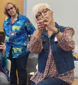 Thank you Yvonne Campanella with Basket Artisans of Arizona for an amazing program on basketry. What beautiful baskets and a great surprise demo with a gift to us! We each got our own tiny basket to make! The two little baskets on bottom are samples of our gift. The loose one is the first Yvonne ever made and the second is her mastery!